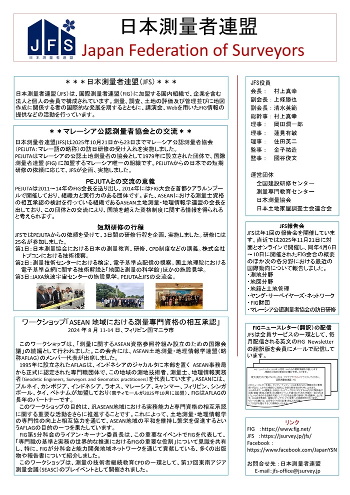 今後とも日本測量者連盟の活動にご理解ご協力のほど、よろしくお願いいたします。