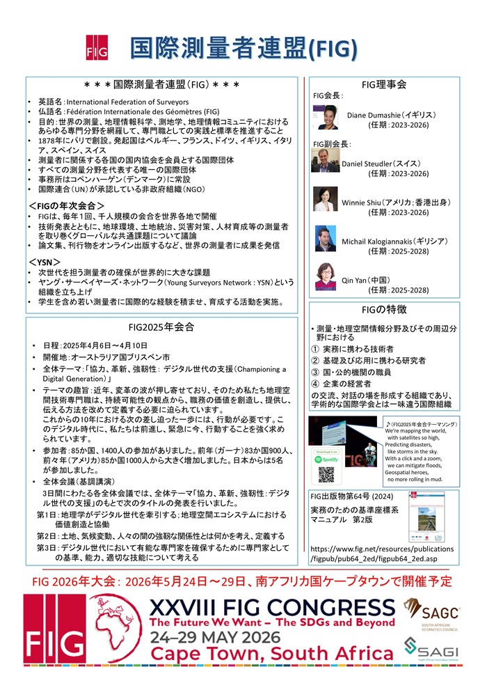 会員の皆様方、日本測量者連盟の活動にご興味のある皆様方、是非ご参加下さいますよう、よろしくお願い致します。